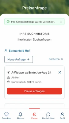 Das BAT-Hofportal von BAT Agrar ist die Handelsplattform rund ums Getreide. Die App bietet die Möglichkeit exklusiv für BAT-Kunden ihre individuellen Getreidepreise in Echtzeit anzufragen und zu handeln.