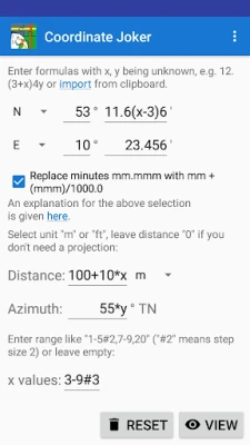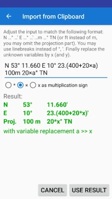 Finally you made it to the pre-final after 3 hours and several miles. A final number to be determined: Count the planks of the bridge ... Hey, where has the bridge gone?! It was replaced by a pipe beneath the ground. What now ...? Look up the logs for potential telephone jokers? No, then I'd rather draw a line in my map, where the final could be located given the formula and missing x ... But wait - Coordinate Joker will do it for you. Just enter the coordinate formulas and it will send the resulting waypoints to your preferred Geocaching app. With a bit of luck, one point will appear close to some path while the others may be far away. Then where would you look for the final? :)