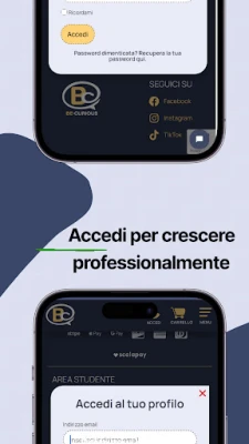 Ecco perché siamo qui per aiutarti a crescere grazie al nostro servizio di e-learning all'avanguardia. Be Curious ti porta l'esperienza della formazione professionale direttamente sul tuo dispositivo mobile. Con un'ampia varietà di corsi online e supporto continuo da tutor esperti, l'apprendimento non è mai stato così comodo e personalizzato. L'interfaccia intuitiva ti permette di gestire il tuo percorso formativo con facilità, adattandosi perfettamente al tuo ritmo quotidiano. Scarica Be Curious e trasforma ogni momento in un'opportunità di crescita.