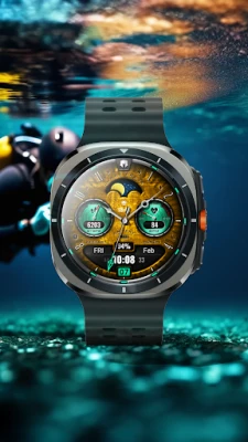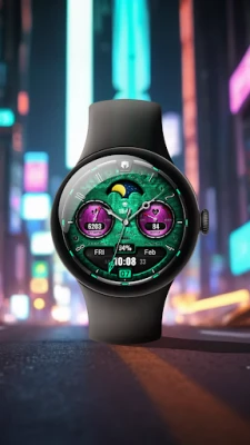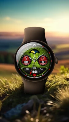 Signature flair in a watch face by Dominus Mathias for Wear OS 3+ devices. It assembles all relevant components, including time, date, health data, battery levels, moon phase and one customizable complication. You can enjoy also app launch shortcuts. There are abundant colors for you to choose.