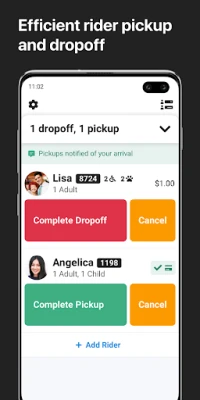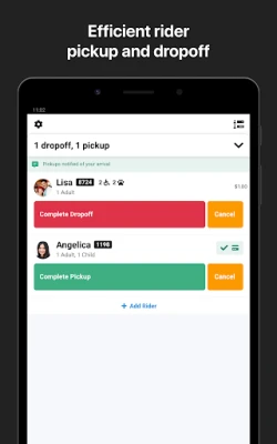 – While driving is front and centre, you can always drag up your itinerary view while you’re in your trip, or view who is currently in the vehicle and drop off early if necessary.