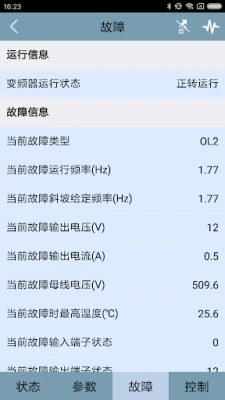 Workshop for Android是一个基于移动互联网技术的变频器监控软件,用户可实时监控变频器的运行状况,获知变频器的状态、功能码、故障等关键数据;一目了然的查看设备运行状况,包括故障、示波等信息,方便用户对变频器进行监控。